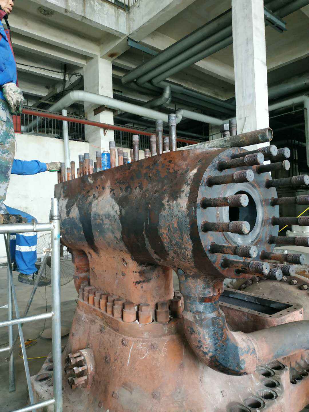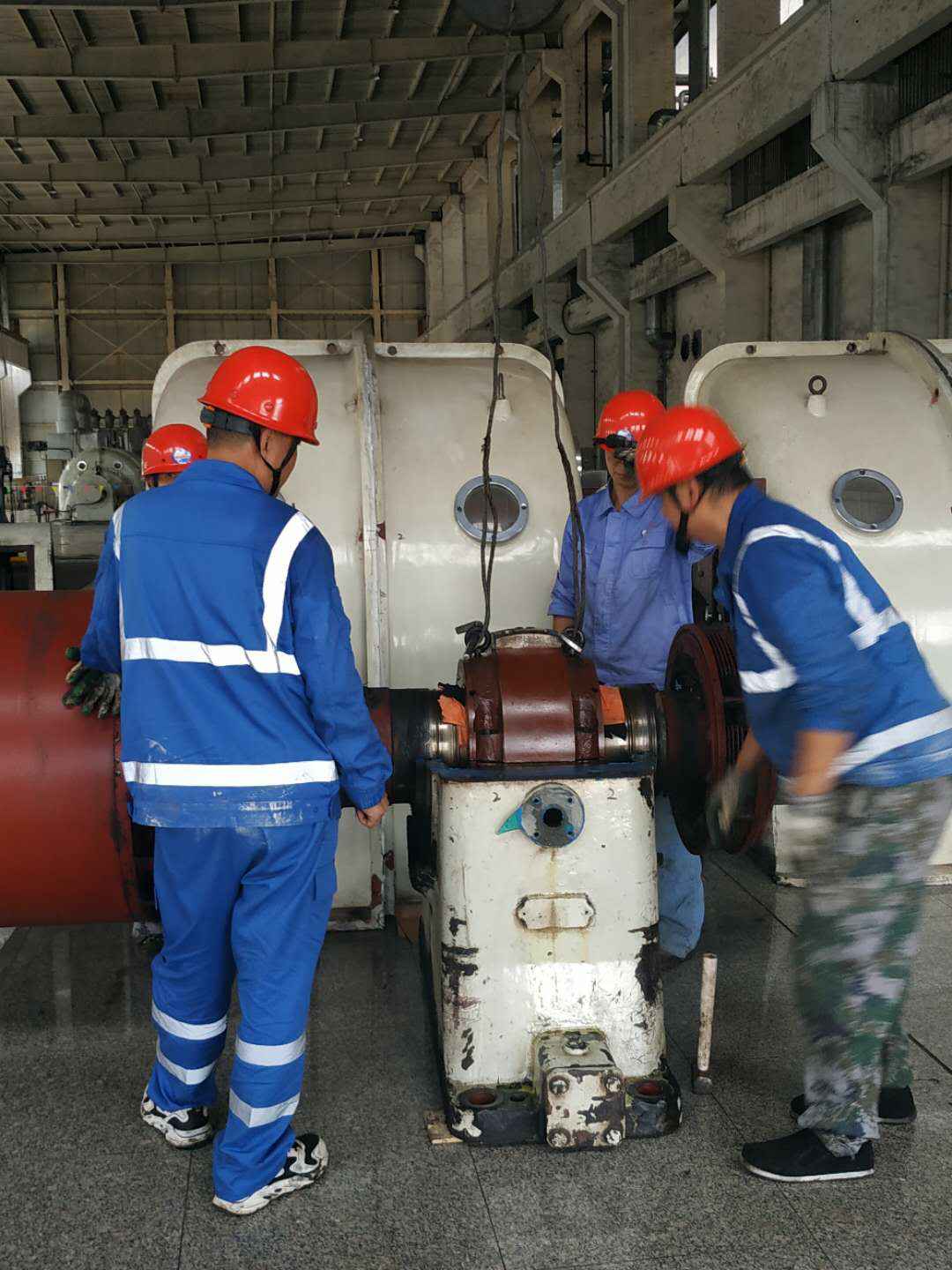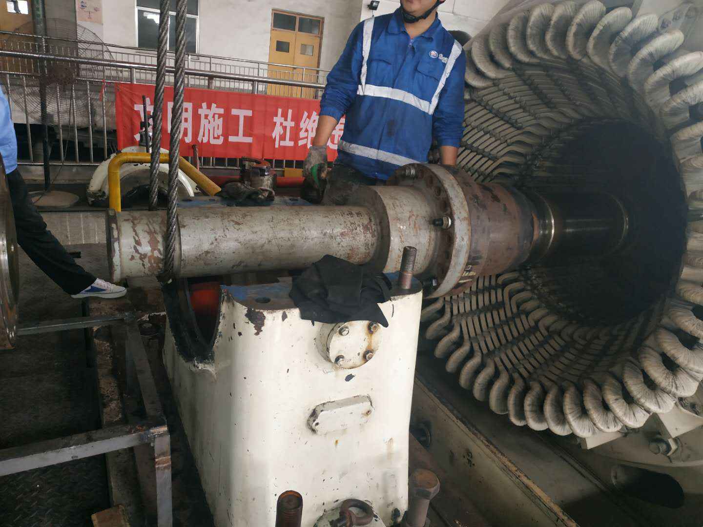 由开云在线登录入口官网-开云(中国)承建的山东海能化学有限责任公司机组B15MW背压式汽轮机组(原 C25抽汽凝汽式机组)大修工程现已完成凝结水泵、油站检修工作,发电机前后轴承座基础垫铁研磨工作,目前蒸汽室螺栓的拆卸工作及发电机定子与转子的清理工作陆续启动,下气缸吊隔板工作也在稳步进行中。